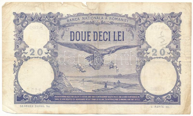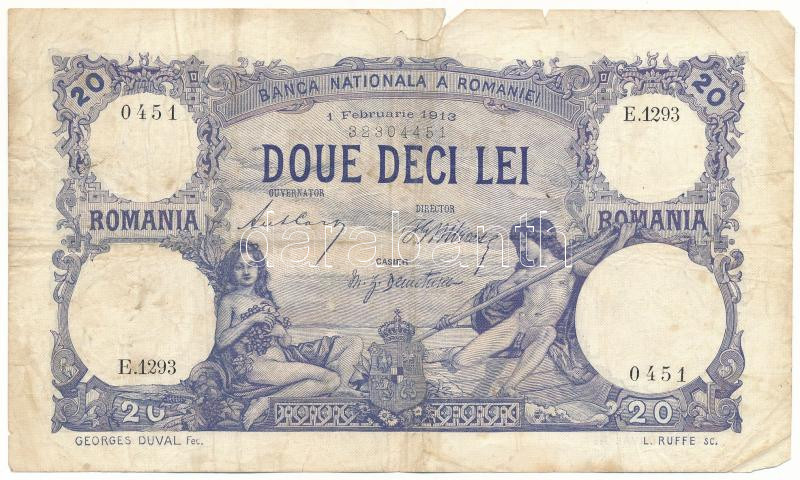 Romania 1913. ... https://www.darabanth.com/hu/504-Gyorsarveres/504.0/Numizmatika/Kulfoldi-bankjegyek~4500061/Romania-1913-februar-1-20L-TF-VG-nagyobb-beszakadas3Cbr-3E-Romania-1913-February-1st-20-Lei-C~II3422866