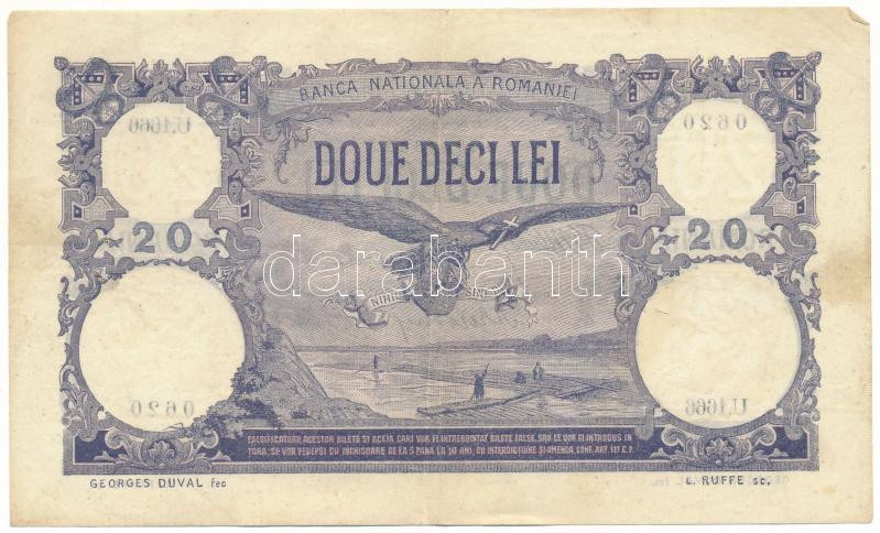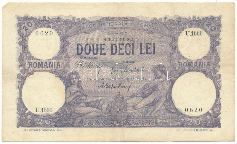 Kr... https://www.darabanth.com/hu/504-Gyorsarveres/504.0/Numizmatika/Kulfoldi-bankjegyek~4500061/Romania-1917-julius-6-20L-TF3Cbr-3E-Romania-1917-July-6th-20-Lei-CF3Cbr-3E-Krause-P2320~II3422864