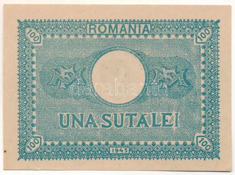Krause P#78 https://www.darabanth.com/hu/504-Gyorsarveres/504.0/Numizmatika/Kulfoldi-bankjegyek~4500061/Romania-1945-100L-TAU3Cbr-3E-Romania-1945-100-Lei-CAU3Cbr-3E-Krause-P2378~II3421230