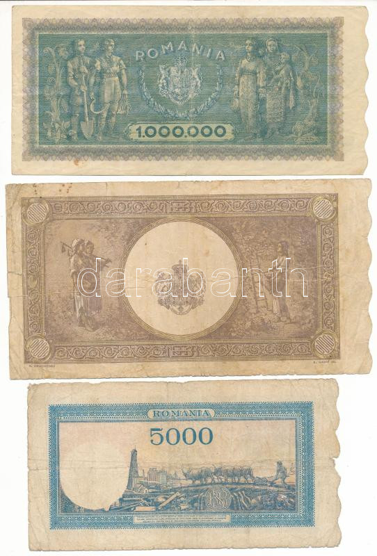 Romania... https://www.darabanth.com/hu/504-Gyorsarveres/504.0/Numizmatika/Kulfoldi-bankjegyek~4500061/Romania-1945-5000L-plus-1946-10000L-plus-1947-1000000L-TF-VG3Cbr-3E-Romania-1945-5000-Lei-plus-1946~II3421299