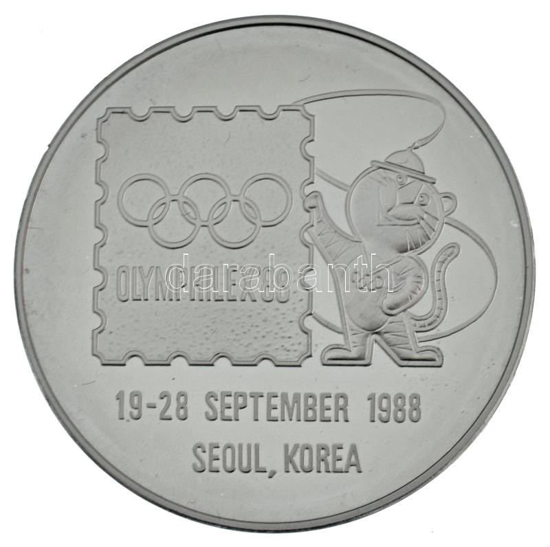 South Korea 1988. "Olymphilex '88 - 19-28 september 1988 Seoul, Korea " two-sided Cu-Ni commemorative medallion in original, decorative case (50mm) C:AU
