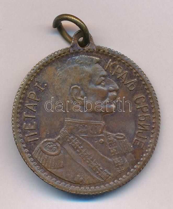 Szerbia 1903-1918. "I. Péter szerb király" bronz medál, füllel (28mm) T:XF