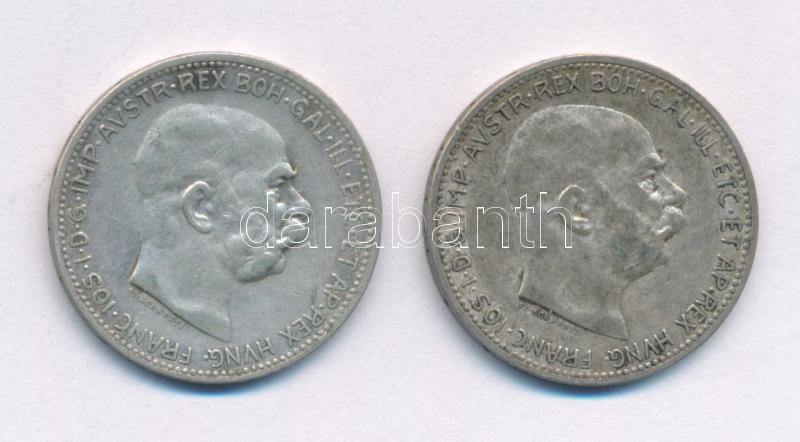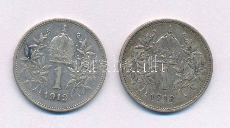 Leírás: Ausztria 1912-1913. 1K Ag "Ferenc József" (2xklf) T:VF,F patina
