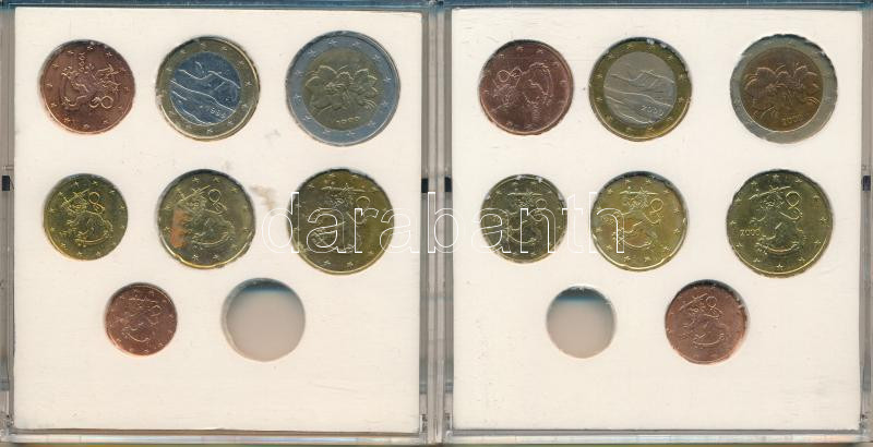 Finland 1999-2000. 1 Cent - 2 Euro (14x) incomplete coin sets C:AU,XF patina