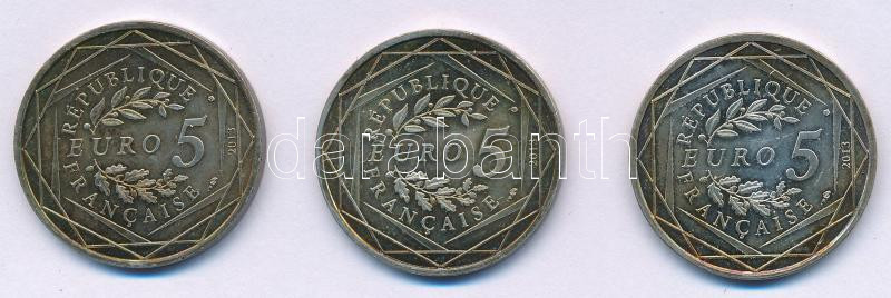Leírás: Franciaország 2013. 5E billon (3xklf: Szabadság, Egyenlőség, Testvériség) T:AU patina