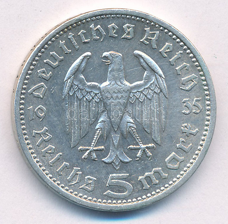 Német Harmadik Birodalom 1935A 5M Ag "Paul von Hindenburg" T... https://www.darabanth.com/hu/504-Gyorsarveres/504.0/Numizmatika/Kulfoldi-fem-es-ezustpenzek~4500062/Nemet-Harmadik-Birodalom-1935A-5M-Ag-Paul-von-Hindenburg-T1-2-German-Third-Reich-1935A-5-Reichs~II2807654