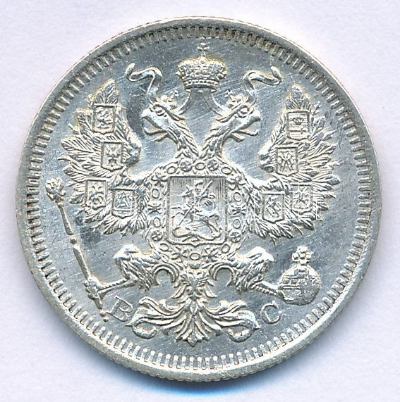 Russian Empire 1915BC 20 Kopecks Ag C:AU, small patina