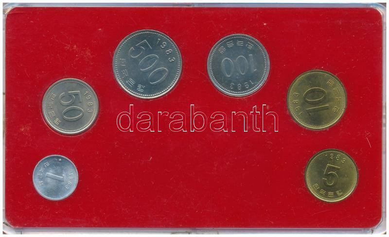 Sou... https://www.darabanth.com/hu/504-Gyorsarveres/504.0/Numizmatika/Kulfoldi-forgalmi-sorok~4500063/Del-Korea-1983-1W-500W-6xklf-forgalmi-sor-muanyag-tokban-TUNC3Cbr-3E-South-Korea-1983-1-Won-~II3404967