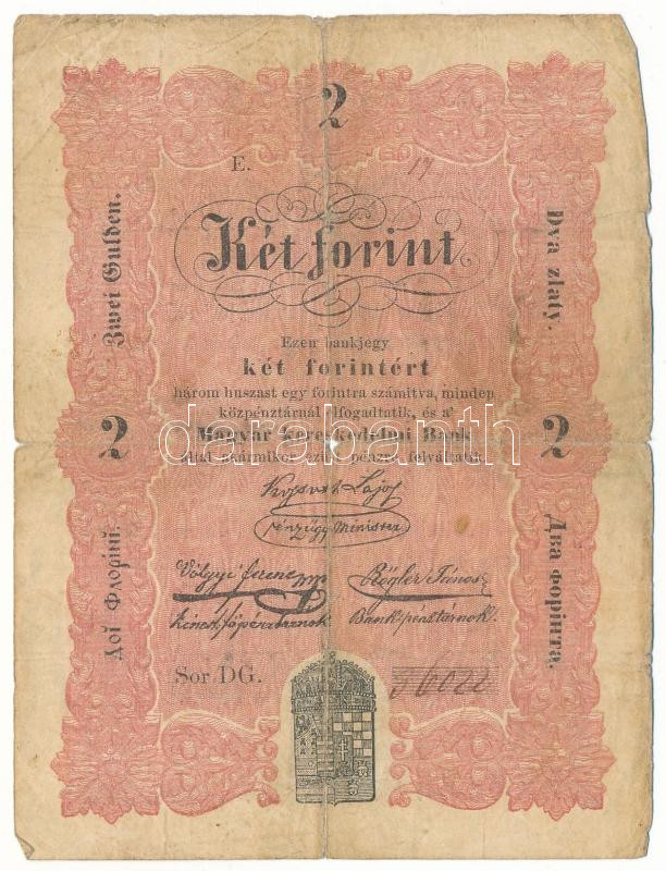 Leírás: 1848. 2Ft "Kossuth bankó" "DG. 36022" T:VG