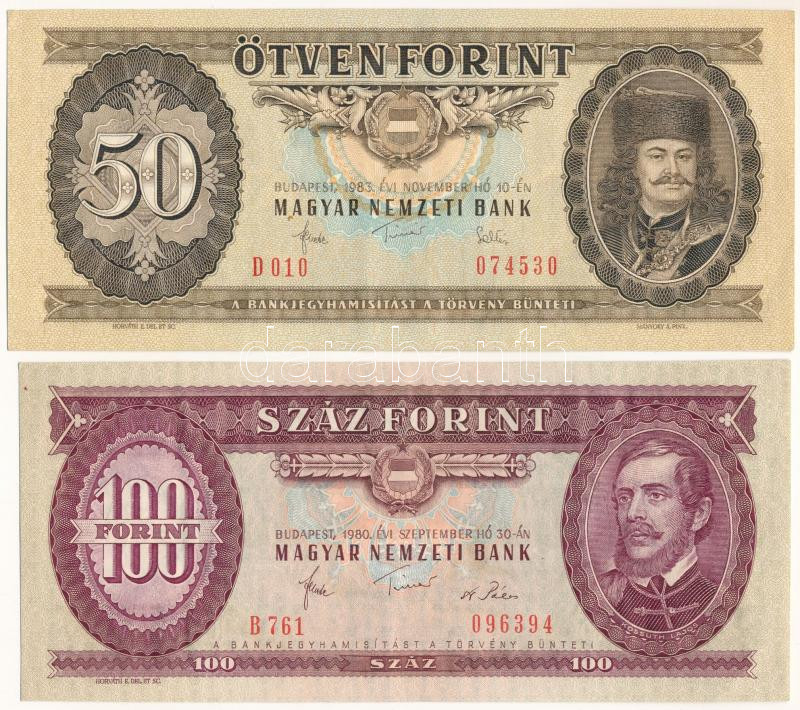 1980. 100Ft + 1983. 50Ft T:F, szép papír