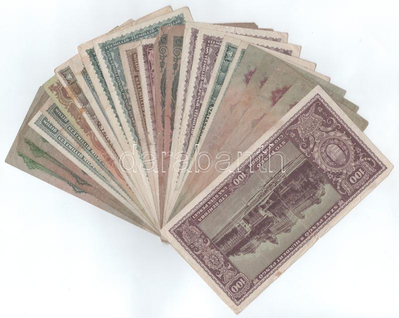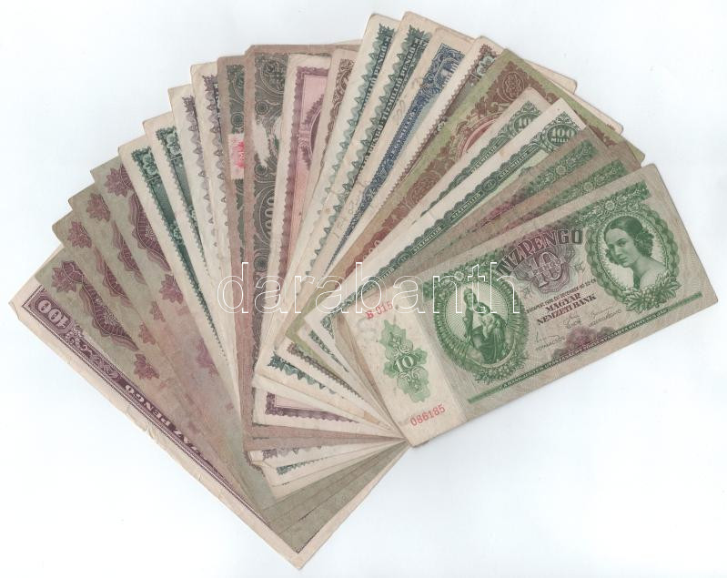 Leírás: Vegyes, 23db-os (13xklf), Pengő bankjegyekből álló tétel T:F,VG, több firkált
