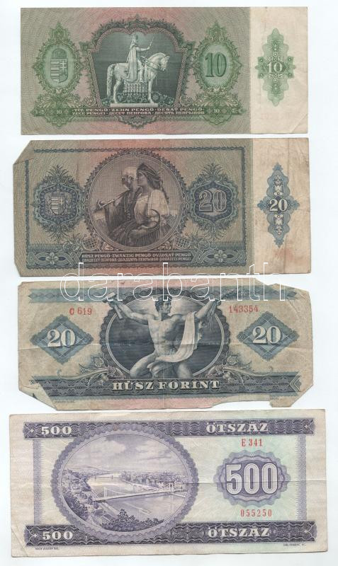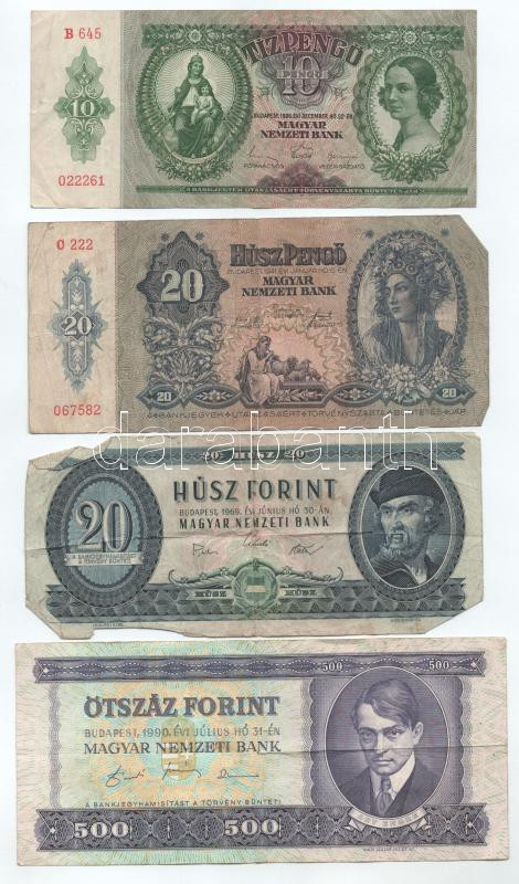 Leírás: Vegyes, 7db-os magyar bankjegytétel, közte 1990. 500Ft "E 341 055250" T:F,VG