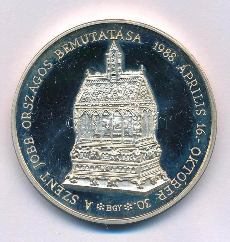 Bognár György (1944-) 1988. MÉE "Államalapító királyunk halálának emlékére 1038-1988 / A Szent Jobb országos bemutatása" kétoldalas, jelzett Ag emlékérem kapszulában (35,98g/0.835/42,5mm) T:AU (eredetileg PP), kis patina