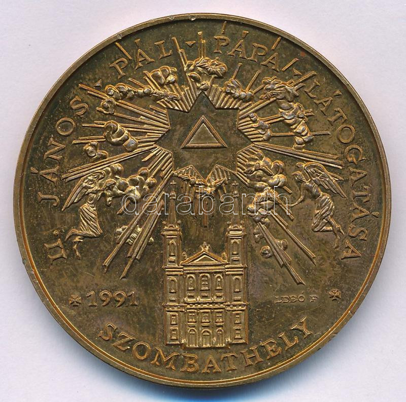 Bognár György (1944-) / Lebó Ferenc (1960-) 1991. "Isten áldd meg a magyart / II. János Pál pápa látogatása - Szombathely" kétoldalas aranyozott fém emlékérem sérült kapszulában (42,5mm) T:XF, aranyozás enyhén lekopott