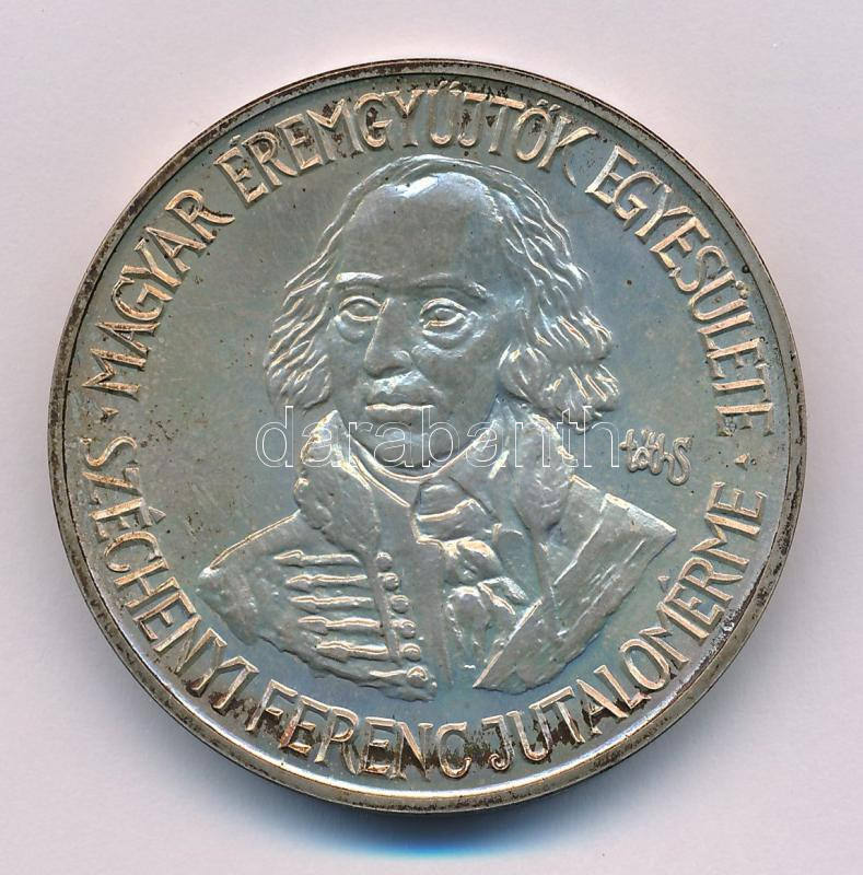Tóth Sándor (1933-2019) 1999. "Széchenyi Ferenc Jutalomérme / Magyar Éremgyűjtők Egyesülete" jelzett Ag emlékérem, III. fokozat. Sima peremmel! (57,69g/0.835/42,5mm) T:AU, patina