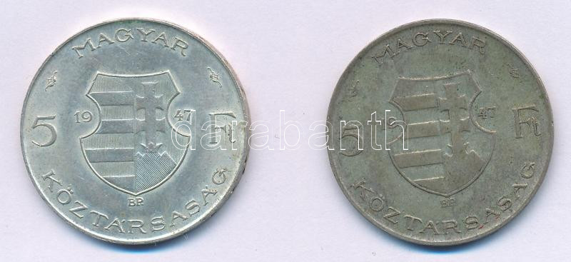 Leírás: 1947. 5Ft Ag "Kossuth" (2x) T:XF,VF patina