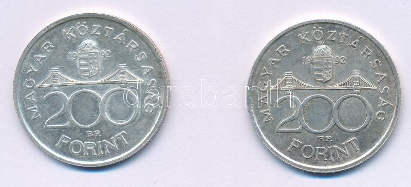 Leírás: 1992. 200Ft Ag "MNB " (2x) T:AU,XF patina