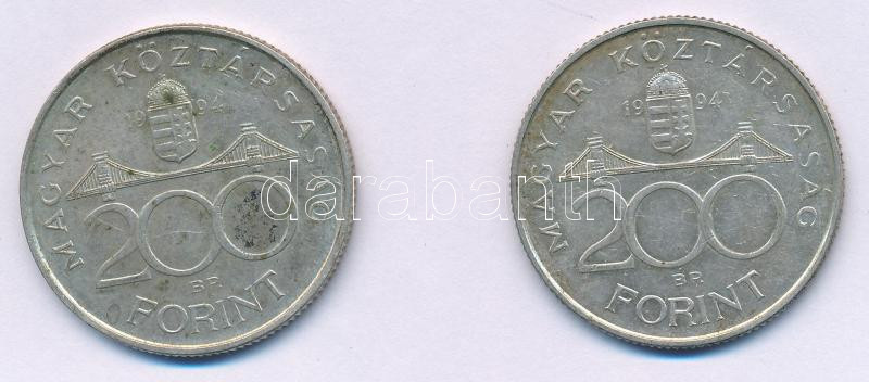Leírás: 1994. 200Ft Ag "Deák" (2x) T:XF patina