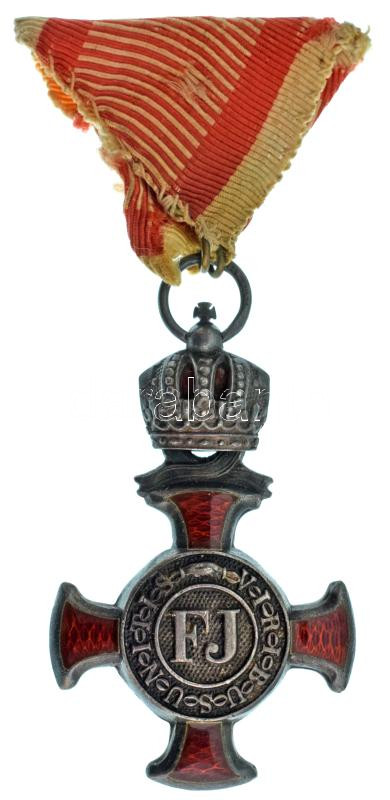 Hungary 1869-1916. "Silver Cross of Merit with Crown" hallmarked Ag decoration with weak condition ribbon, with hallmark and "Wilhelm Kunz" maker's mark on suspension ring C:AU