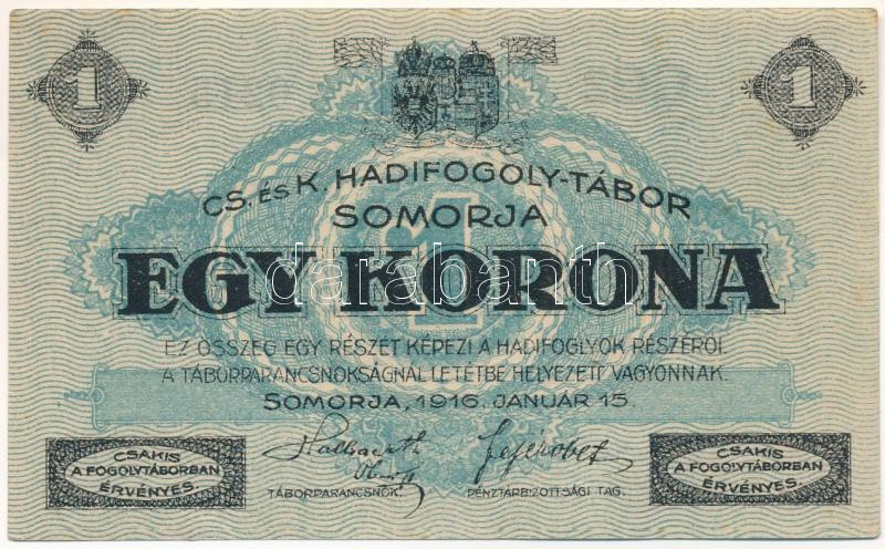 1916. Somorja / Hadifogolytábor 1916. január 15. 1K két nagybetű és egy szám sorozatjellel és arab sorszámmal "GG2 0215" T:AU, sarokhajlás