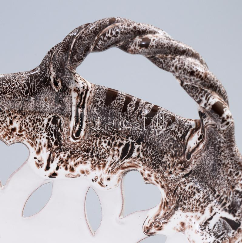Leírás: Csorgatott mázas kosár alakú kerámia gyümölcskínáló, hibátlan, 24x16 cm