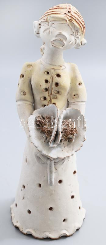 Kovács Éva (1938-): Lány virággal. Jelzett, minimális kopással, m: 25,... https://www.darabanth.com/hu/504-Gyorsarveres/504.0/Porcelan-keramia-uveg/Keramiak~1/Kovacs-Eva-1938-Lany-viraggal-Jelzett-minimalis-kopassal-m-25-5-cm~II3424376