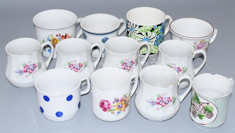 Leírás: 12 darab klf retro és régi bögre, emlékbögre, tejfölös bögre komatál, közte sérült.