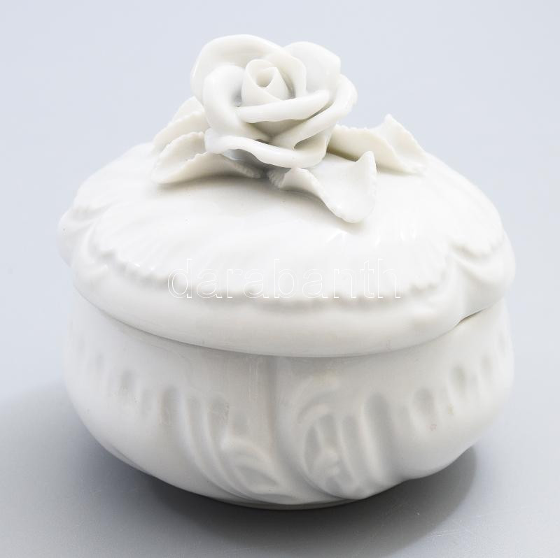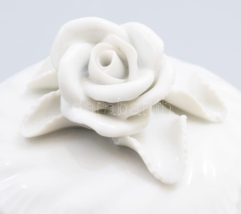Leírás: Herendi fehér bonbonier, plasztikus fogóval, masszába nyomott jelzéssel, hibátlan, d: 8 cm