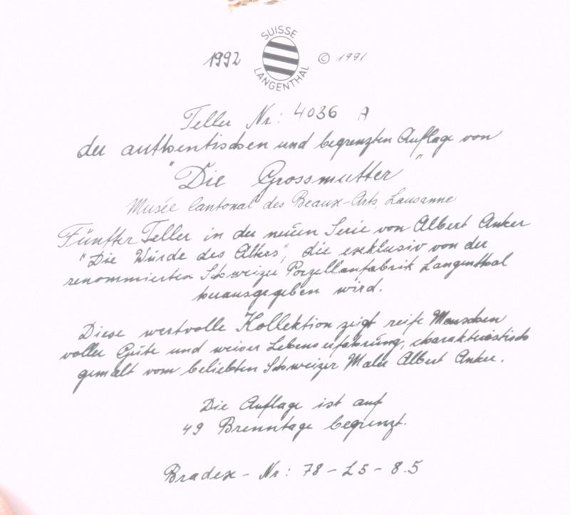 Leírás: Lagenthal dísztányér, Albert Anker festményének reprodukciójával díszítve, jelzett, hibátlan, d: 23 cm