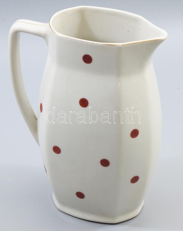 Leírás: Pirospöttyös vizeskancsó, jelzett, minimális kopással, m: 21,5 cm