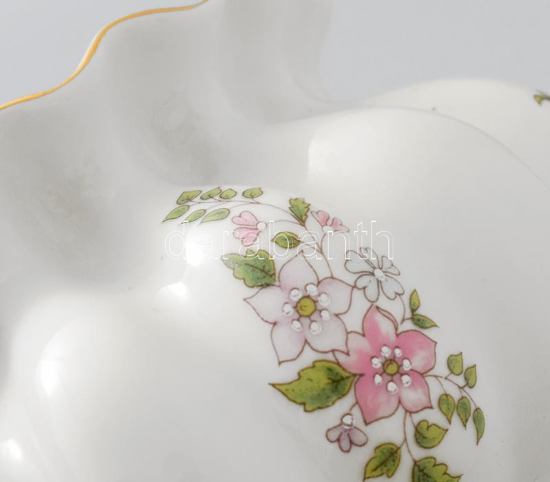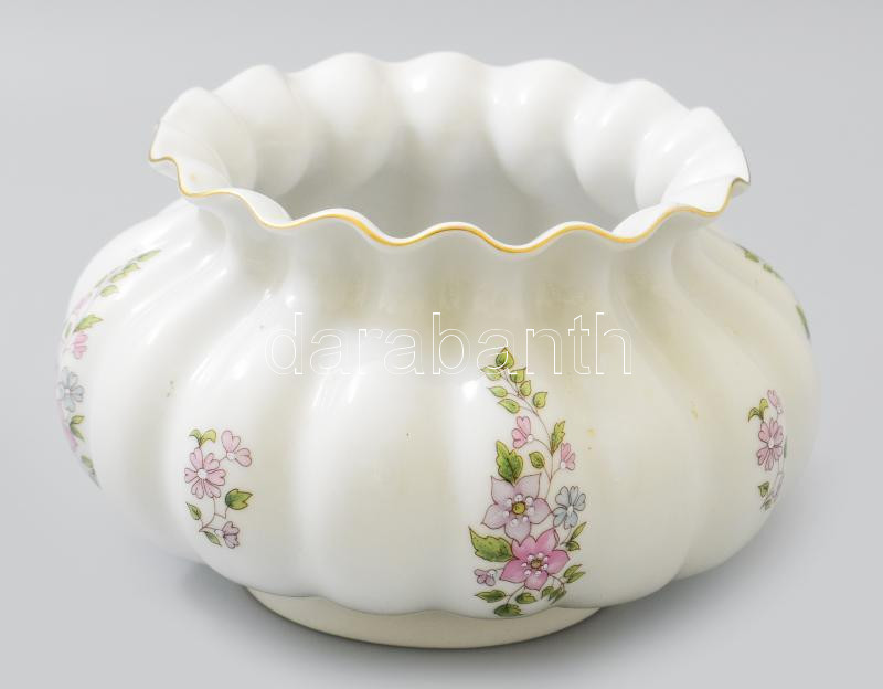 Leírás: Zsolnay paradicsomvirág alakú váza, matricás virágmintával, jelzett, hibátlan, d: 15 cm