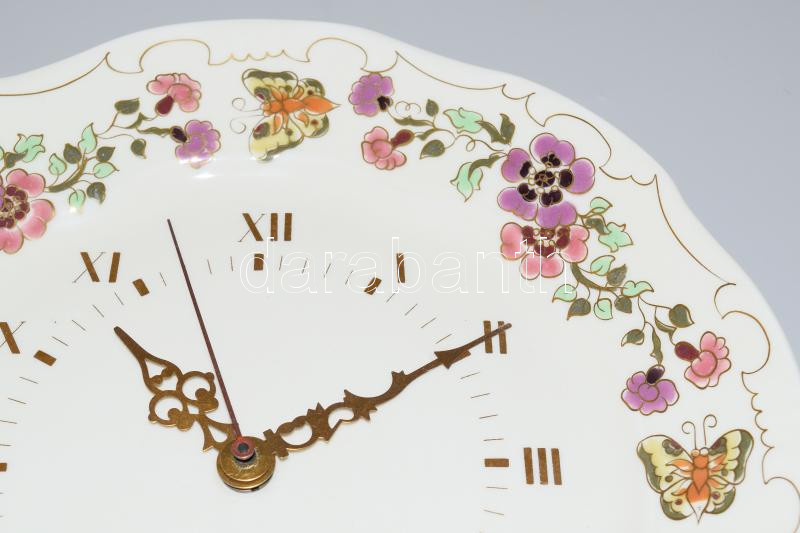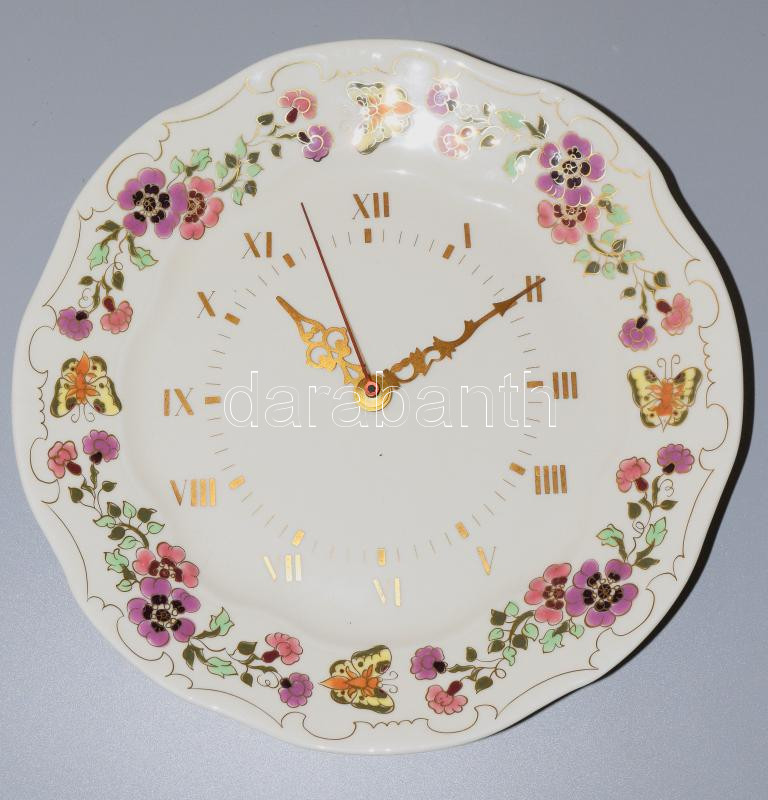 Zsolnay pillangó mintás falióra, jelzett, működő szerkezettel, hibátla... https://www.darabanth.com/hu/504-Gyorsarveres/504.0/Porcelan-keramia-uveg/Porcelan~2/Zsolnay-pillango-mintas-faliora-jelzett-mukodo-szerkezettel-hibatlan-d-26-cm~II3425774