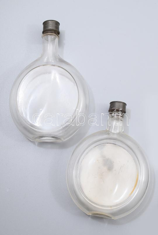 Leírás: 2 darab régebbi laposüveg, ón kupakkal, m: 13 cm