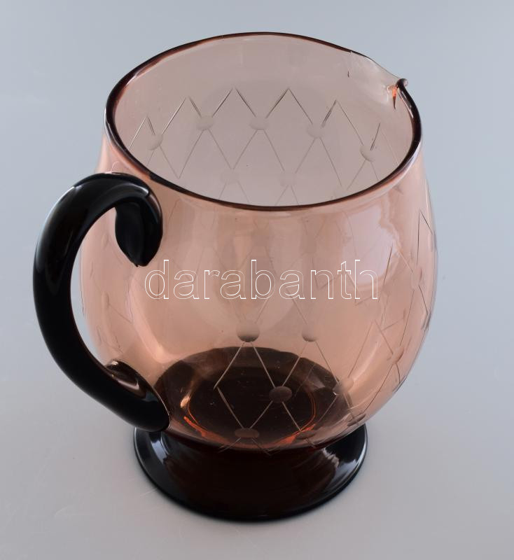 Leírás: Art deco kancsó. Anyagában színezett, köszörült mintával, jelzés nélkül, hibátlan, m: 18,5 cm