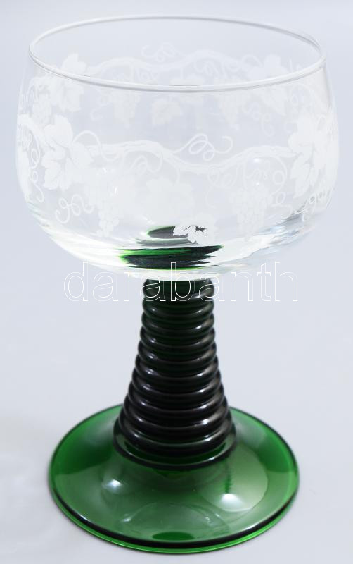Leírás: Francia szőlőmintás boros pohár garnitúra, anyagában színezett talpazattal, 6 darab, jelzett, hibátlan, m: 14 cm