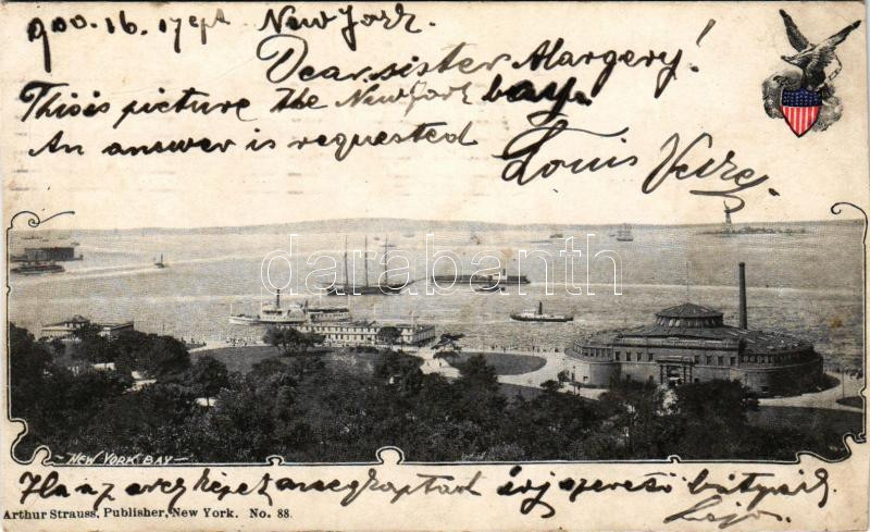 1900 New York City, New York Bay. Arthur Strauss No. 88. (cut) https://www.darabanth.com/hu/506-Gyorsarveres/506.0/Kepeslapok/Amerikai-Egyesult-Allamok~120/1900-New-York-City-New-York-Bay-Arthur-Strauss-No-88-cut~II3429680