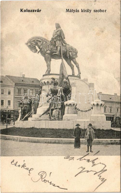 1905 Kolozsvár, Cluj; Mátyás király szobor, üzletek / statue, shops (E... https://www.darabanth.com/hu/506-Gyorsarveres/506.0/Kepeslapok/Erdely~112/1905-Kolozsvar-Cluj-Matyas-kiraly-szobor-uzletek-statue-shops-EK~II3432000