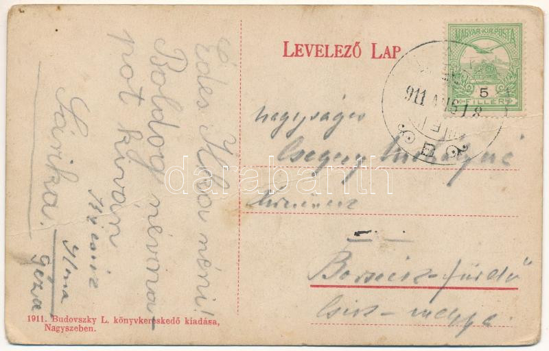1911 Vízakna, Salzburg, Ocna Sibiului; Sósgyógyfürdő, park részlet a Rákóczi sóstóval, időjárásjelző. Kiadja Budovszky L. / spa, salt bath, weather indicator (fa)