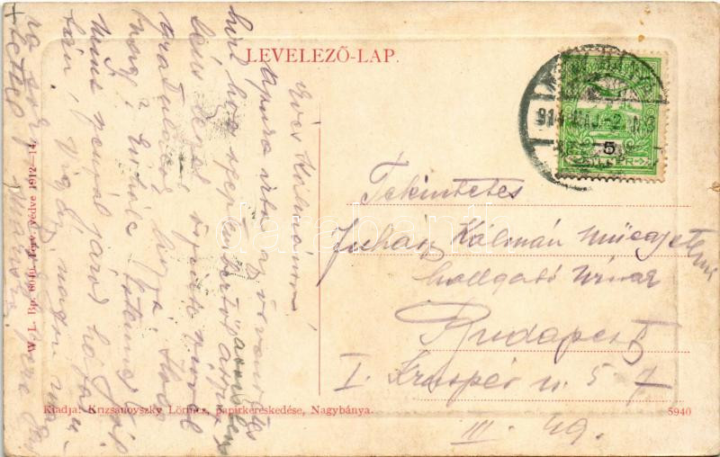 Leírás: 1914 Nagybánya, Baia Mare; látkép. Krizsanovszky Lőrinc kiadása W.L. Bp. 6040. / general view (kis szakadások / small tears)