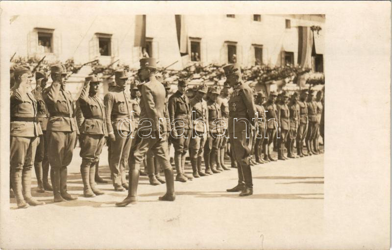 Alváca, Vata de Jos (Hunyad); IV. Károly király szemléje Alvácán. A király a 46. repülőszázad tisztjeivel beszél, mögötte Boroevic tábornagy 1917. június 2-án / WWI K.u.K. military, Charles I of Austria on inspection in Vata de Jos. The king speaks to the officers of the 46th Aviation Squadron (Flik 46), with Field Marshal Boroevic behind him, 2 June 1917. photo