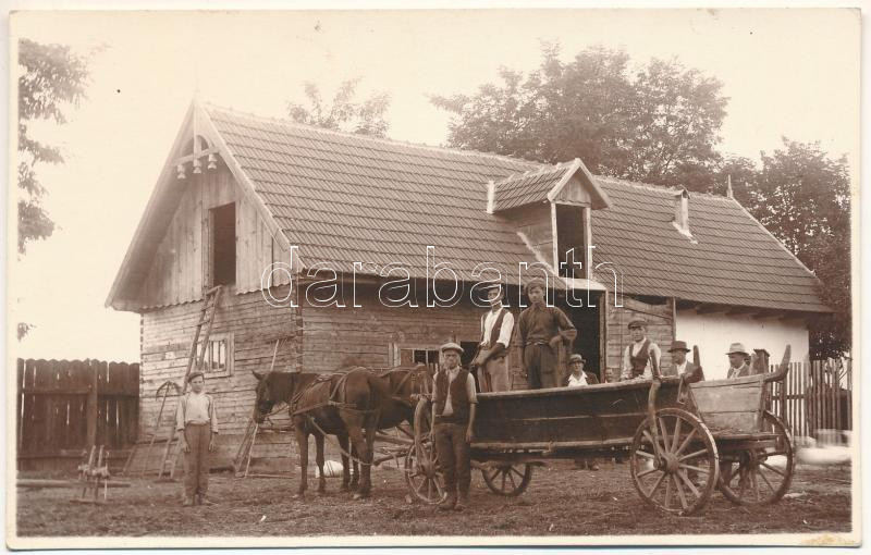 Leírás: Kézdivásárhely, Targu Secuiesc; lovas szekér gazdákkal. Bogdán felvétele / horse chariot with farmers. photo