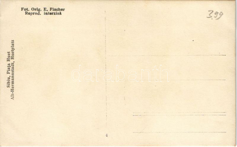 Nagyszeben, Hermannstadt, Sibiu; Piata Huet. Foto Orig. E. Fischer / Huetplatz / Huet tér, Wilhelm Binder, Theodor Doboiu üzlete / square, shops. photo