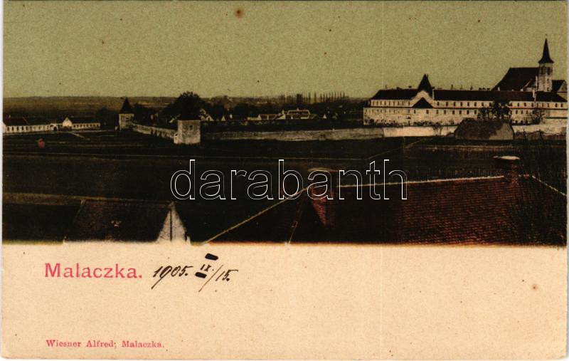 1905 Malacka, Malaczka, Malacky; erődített kolostor (Balassa várkastély). Wiesner Alfréd kiadása / fortified monastery (former castle) - panorámalap egyik fele / one half of a panoramacard (non PC) (fl)