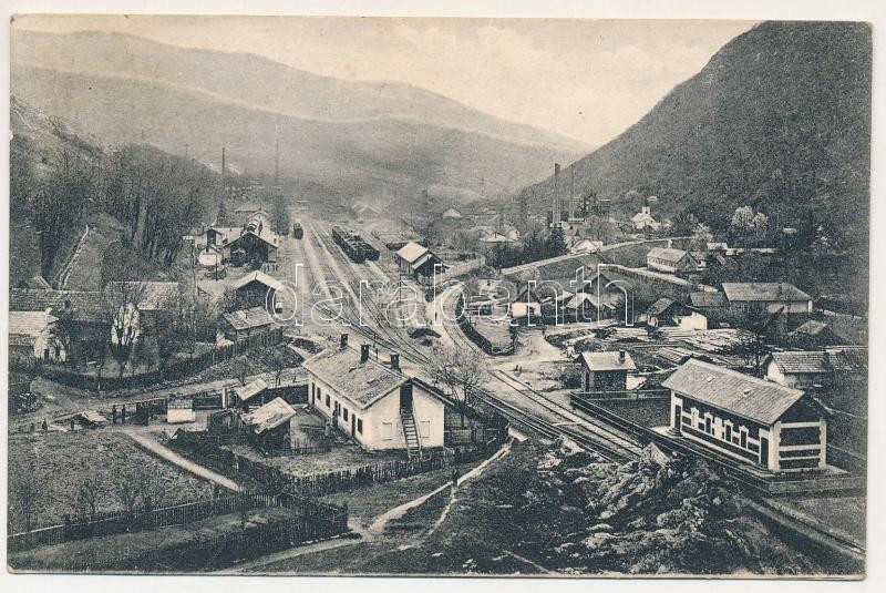 Leírás: 1935 Tiszolc, Tisovec; Nádrazie. Fr. Hortensky / vasútállomás, vonat / railway station, train (fa)