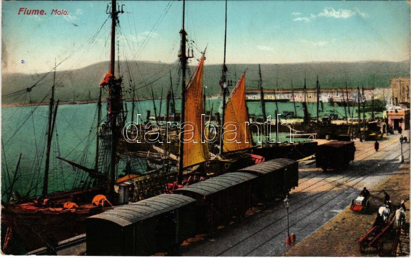 1912 Fiume, Rijeka; Molo / industrial railway, wagons, ships (EK) https://www.darabanth.com/hu/506-Gyorsarveres/506.0/Kepeslapok/Horvatorszag~114/1912-Fiume-Rijeka-Molo-industrial-railway-wagons-ships-EK~II3265575