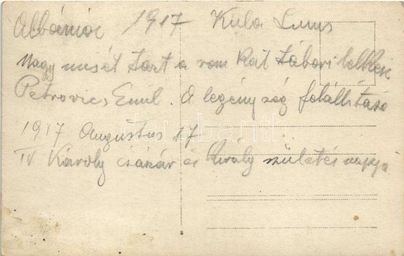1917 Albánia, Kula Lums (Kulla e Lumës), nagymisét tart Petrovics Emil római katolikus tábori lelkész, IV. Károly király születésnapja, osztrák-magyar katonák / WWI Austro-Hungarian K.u.k. military, military field mass in Albania, soldiers, birthday of King Charles I of Austria. photo (EK)