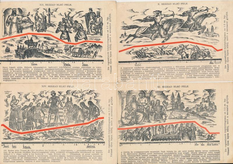 18 db RÉGI művészlap: Magyarország történelme metszetekben, sorozat. Kiadja a Magyar Nemzeti Szövetség, Majoros István, Pál Ferenc / 18 pre-1945 art postcards: history of Hungarian Kingdom