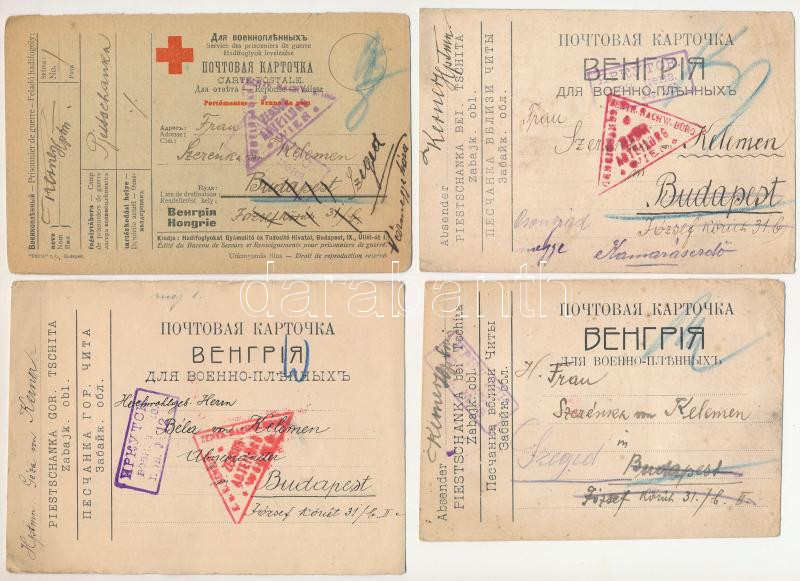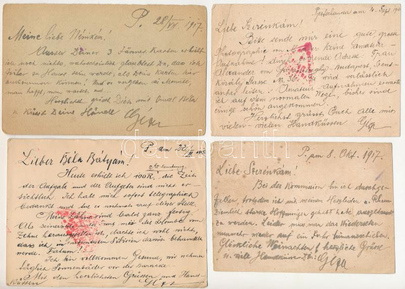 1916-1917 8 db RÉGI első világháborús orosz-magyar hadifogoly levelezőlap, vegyes minőségben / 8 pre-1945 WWI Russian-Hungarian POW (prisoner of war) postcards, in mixed quality