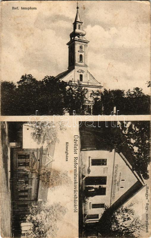 Reformátuskovácsháza (Mezőkovácsháza), Református templom, községháza,... https://www.darabanth.com/hu/506-Gyorsarveres/506.0/Kepeslapok/Magyarorszag~111/Reformatuskovacshaza-Mezokovacshaza-Reformatus-templom-kozseghaza-Hangya-szovetkezet~II3429889
