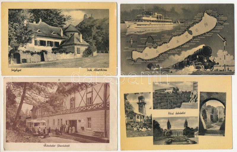 Leírás: 21 db MODERN magyarországi város képeslap (Képzőművészeti Alap) / 21 modern Hungarian town postcards (1950s)